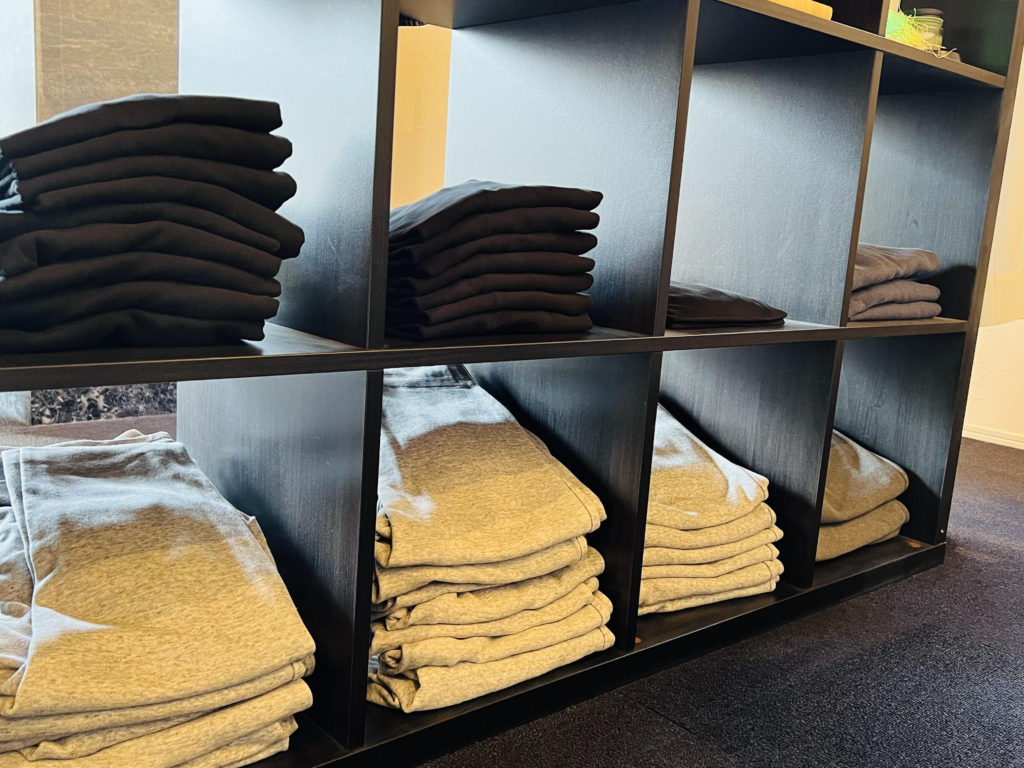 ゆったり目のスウェットパンツと、肩・首周りの施術はクリームを使っての施術となりますので、鎖骨ぐらいまで開いたTシャツ(七分丈か長袖が◎)が好ましいです。もちろんお着替えもご用意しておりますので、普段着やお仕事帰りにそのままご来店頂いても大丈夫です。